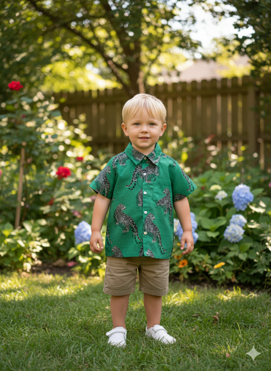 Kids Angad Half Sleeves Shirt: Leopard Green