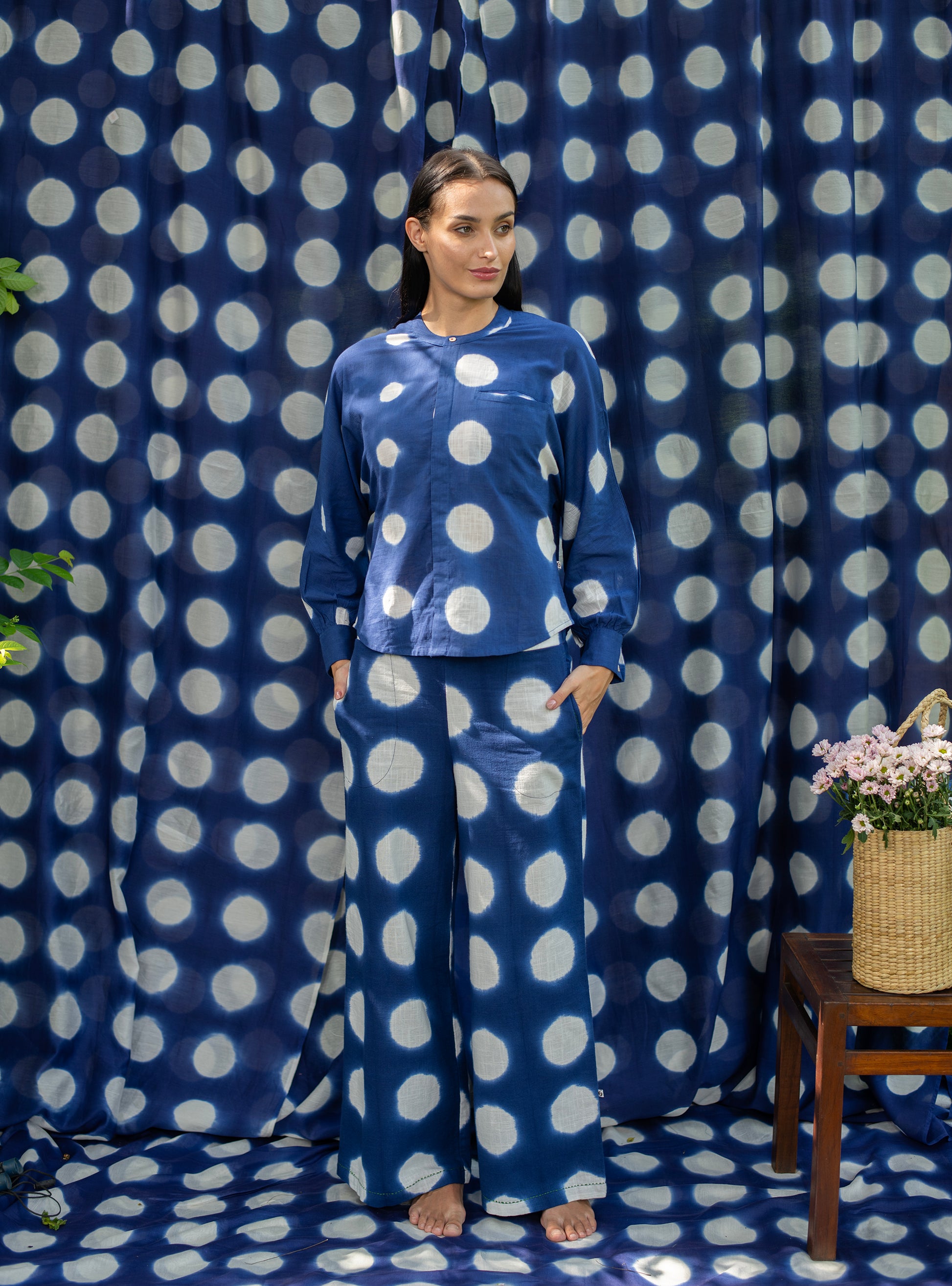 The Ellie Pant Tie Dye in Circle Navy Textured presents a sophisticated blend of comfort and style. Crafted with a distinct textured fabric, its subtle tie-dye pattern in navy tones adds depth and character. Designed for an expert fit, these pants offer both durability and elegance, making them ideal for versatile wear from casual to refined settings. Their unique texture and tailored cut provide a modern update to traditional loungewear.